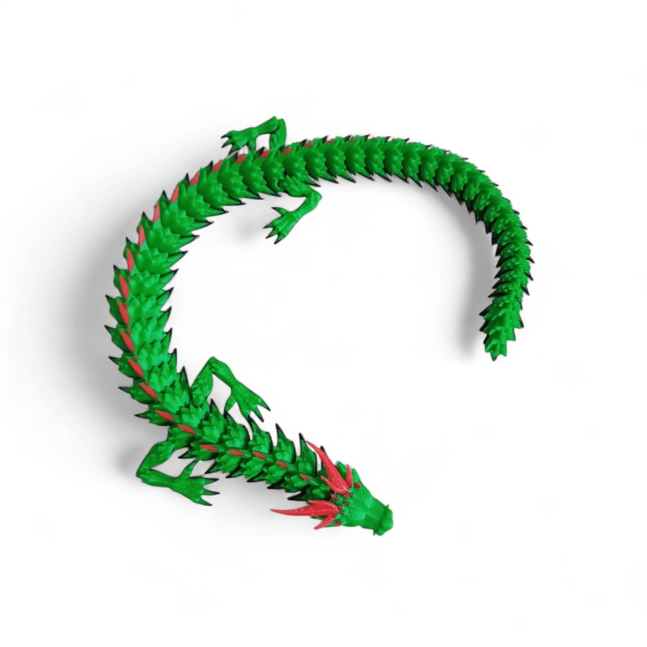 El Dragón Articulado de 42 cm es una figura impresa en 3D que une diseño detallado con movilidad total. Sus múltiples articulaciones permiten poses dinámicas, desde vuelo amenazante hasta descanso vigilante, convirtiéndolo en una pieza central para cualquier colección o escenografía fantástica.