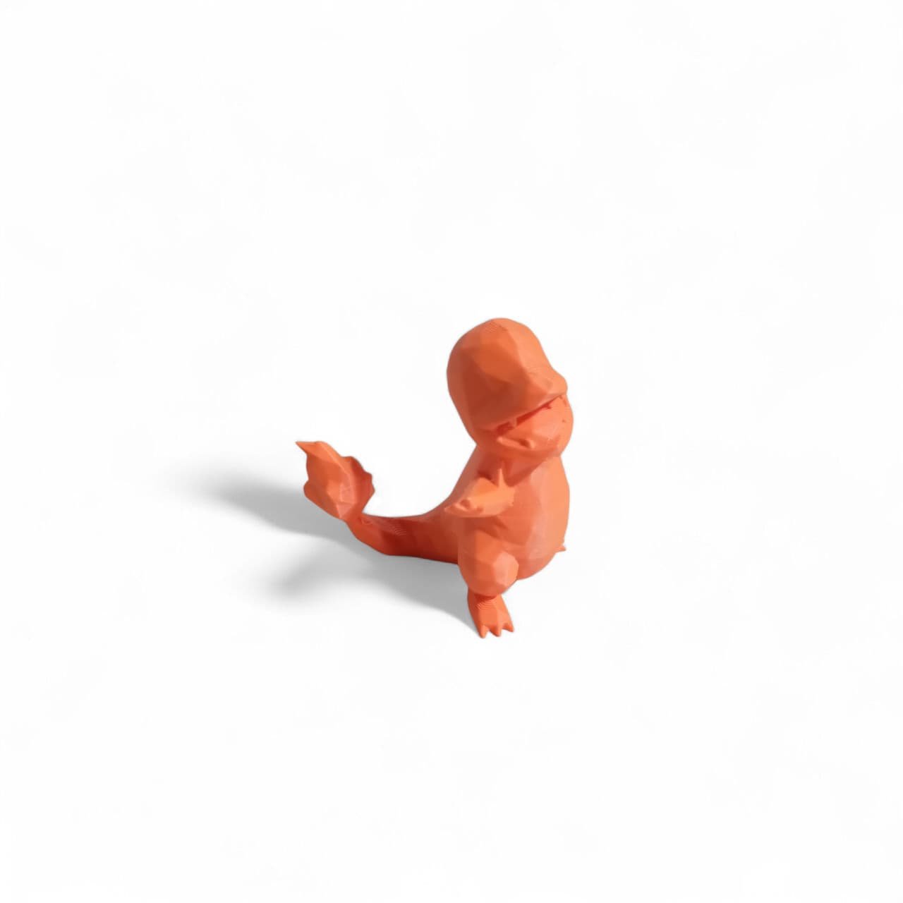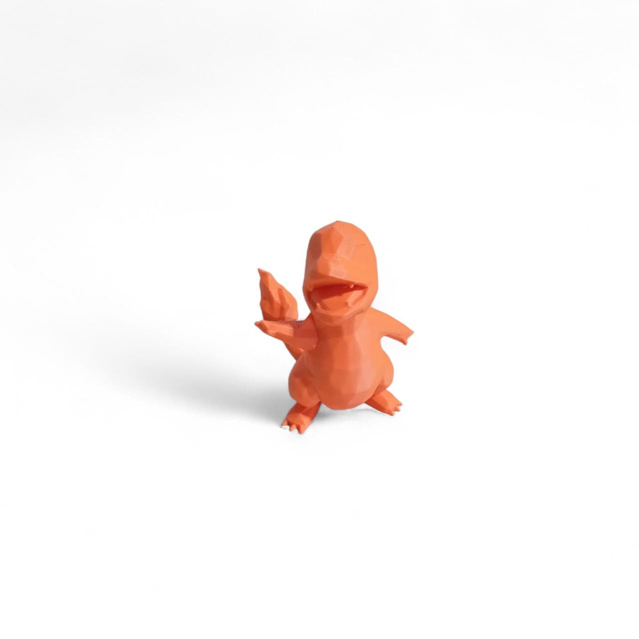 El Charmander Polígono es una figura impresa en 3D que reinterpreta al querido Pokémon de fuego con un estilo low poly moderno y minimalista. Sus formas facetadas le dan un aire artístico y contemporáneo, sin perder la esencia cálida y valiente del original.